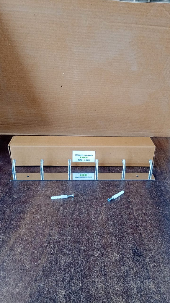 Organize your space efficiently with this premium Wall Mounted Stainless Steel 6-Hook Rack. Built with durable, rust-resistant stainless steel, it’s perfect for hanging towels, clothes, coats, bags, and kitchen utensils. Its minimalist design complements modern home décor, and the compact size makes it suitable for any room including bedroom, bathroom, entryway, or kitchen. Comes with screws and wall plugs for easy installation.